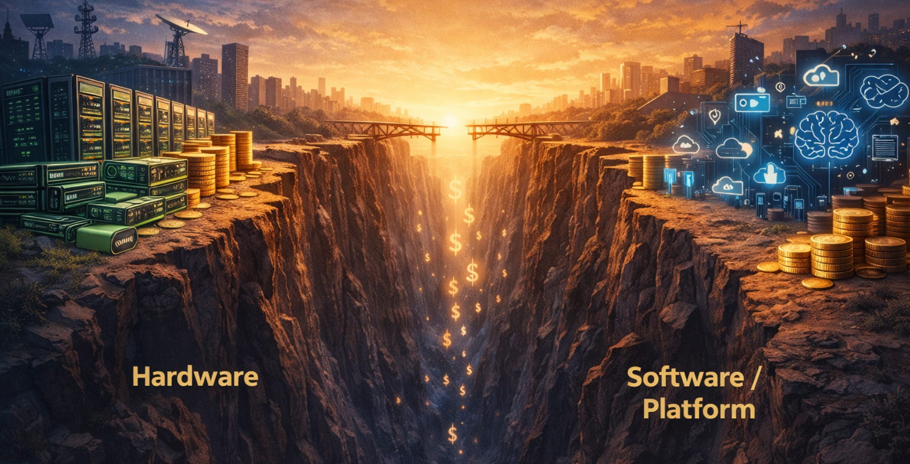 On one side, hardware players are already realizing revenue. On the other, software and platform companies remain in a time-lag phase, where infrastructure is being built faster than monetization pathways are proven.