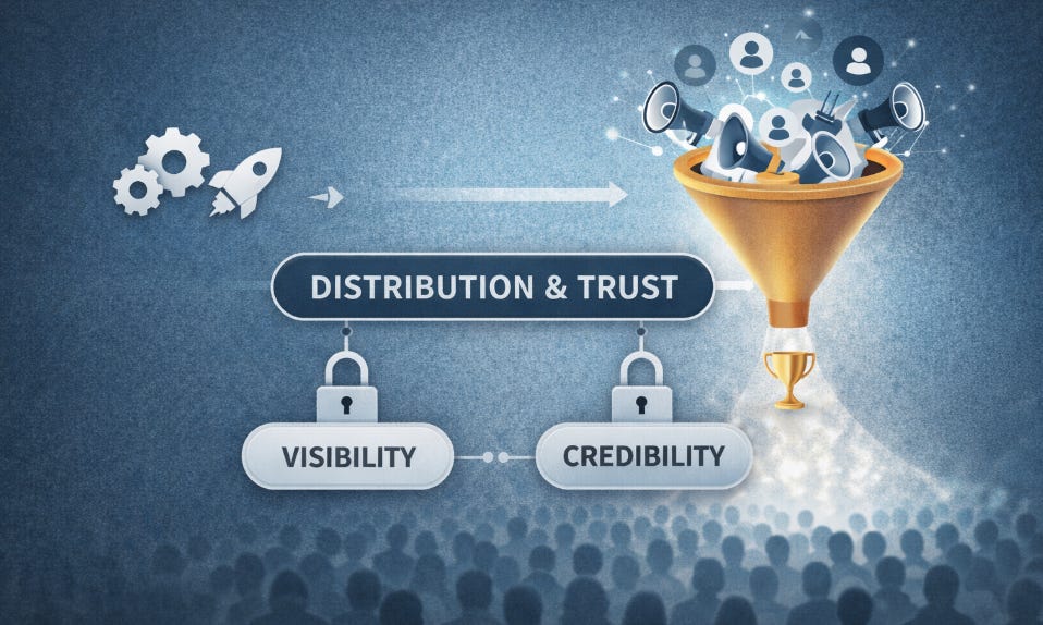 The constraint is no longer the ability to build. It is the ability to be seen and trusted.