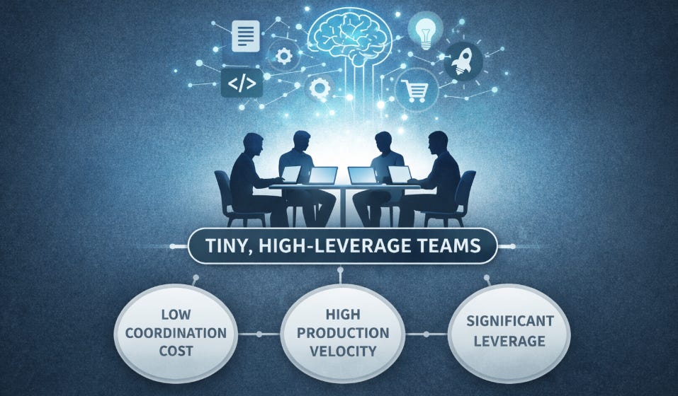 Small teams, often consisting of one to five people, are building products with meaningful scale. They operate with minimal coordination cost while maintaining high production velocity.